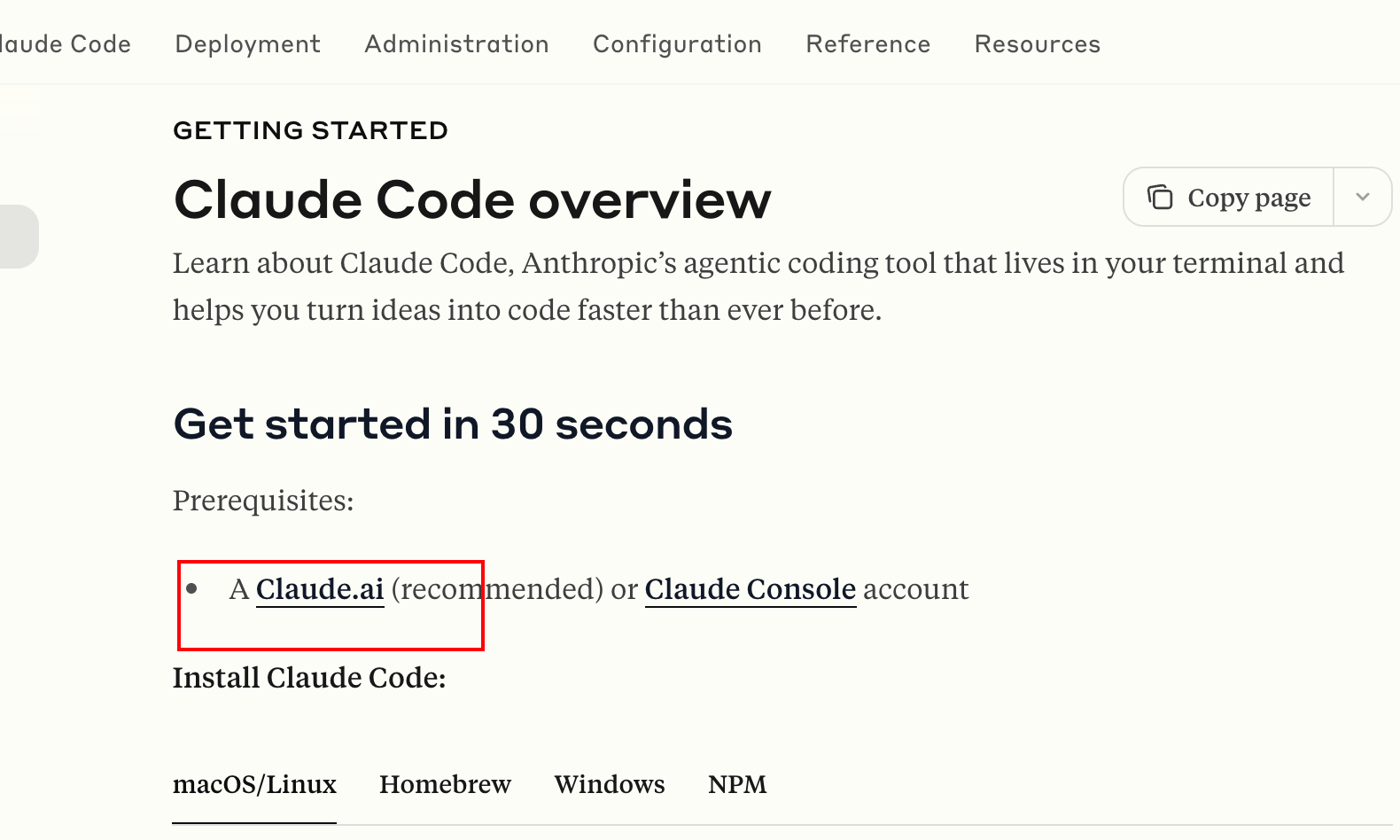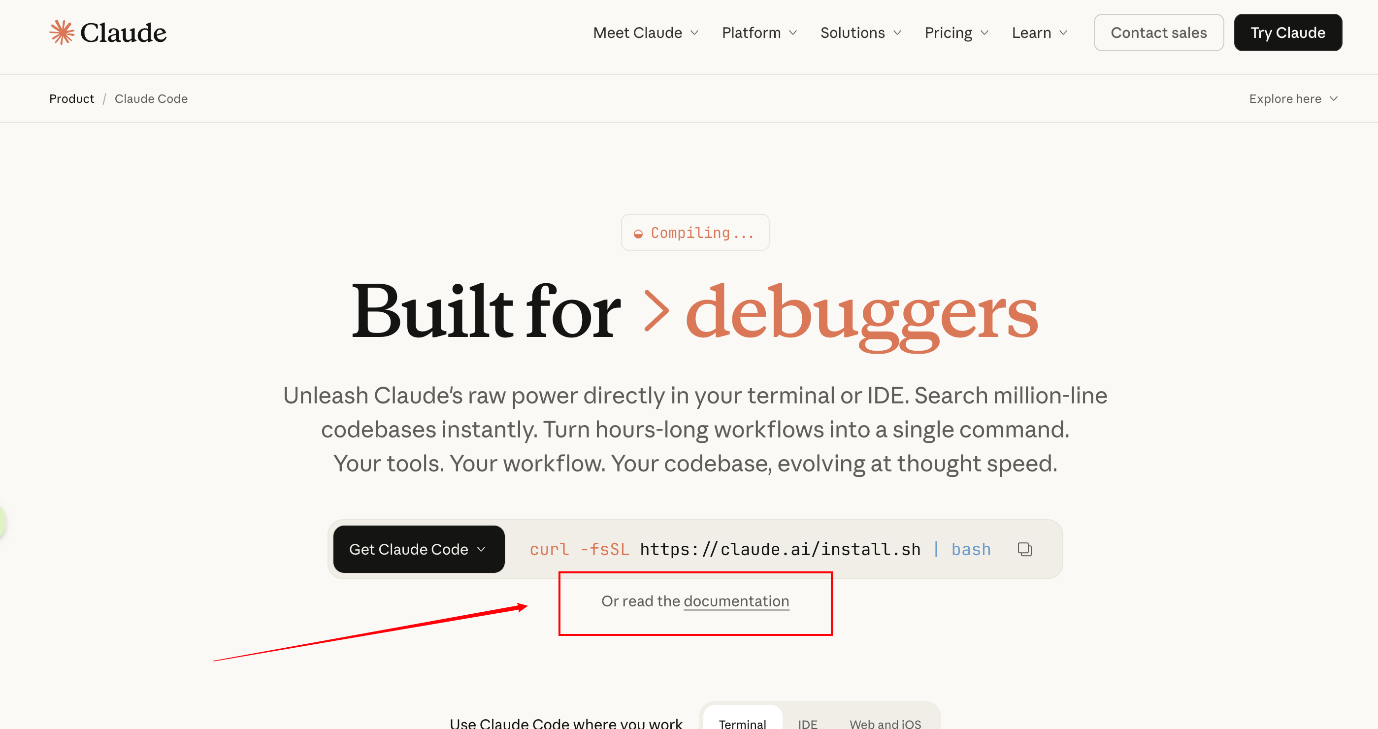 1. 点击进入 Claude Code 官网 ,然后点击图示位置