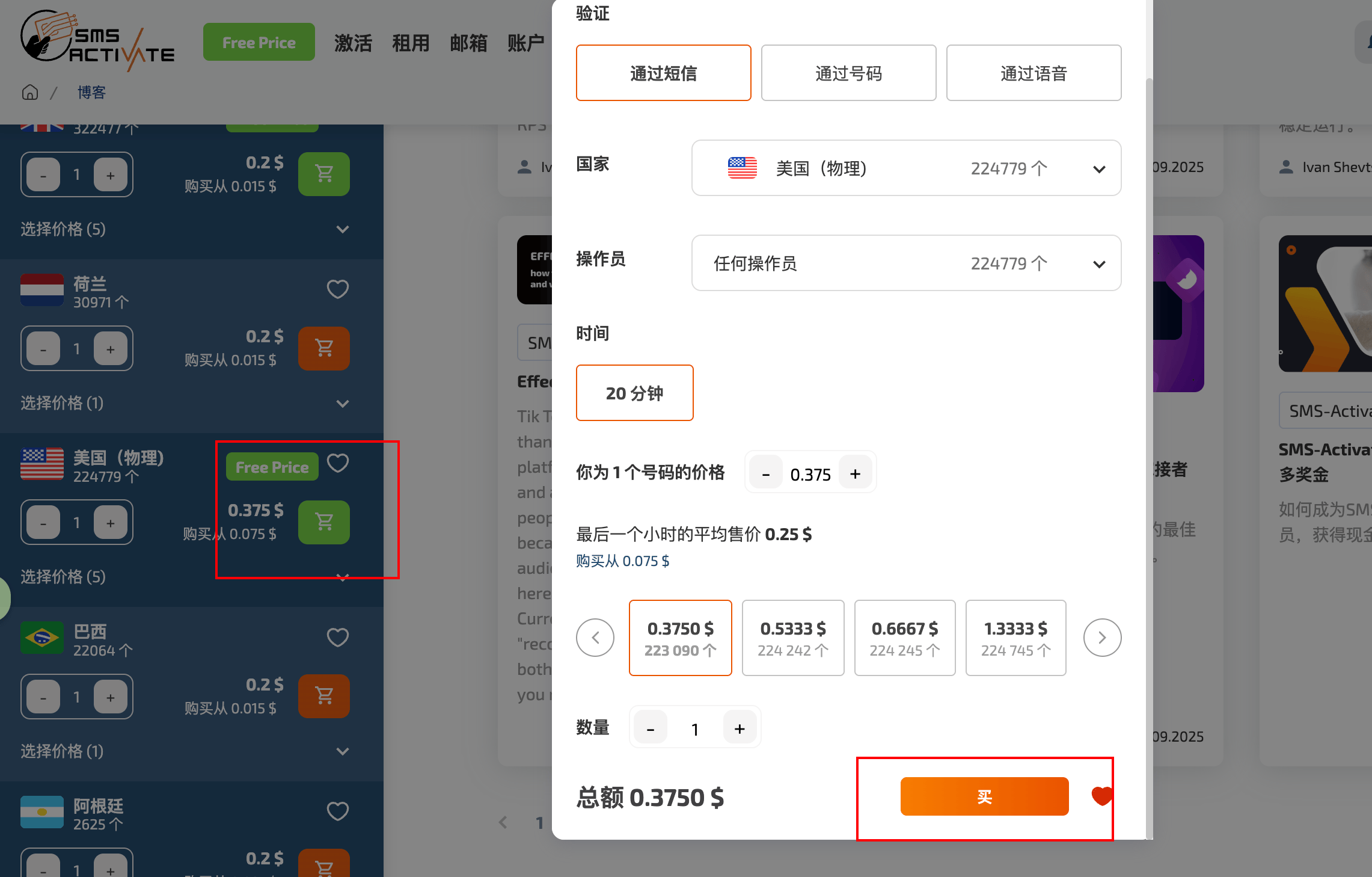 1. 在搜索列表中选中美区电话号,点击购物车图标。弹窗中的内容不用修改,直接点击购买